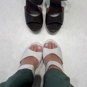 As tiras cruzadas abraçam o pé com charme, enquanto a amarração no tornozelo traz segurança e um toque delicado ao visual.