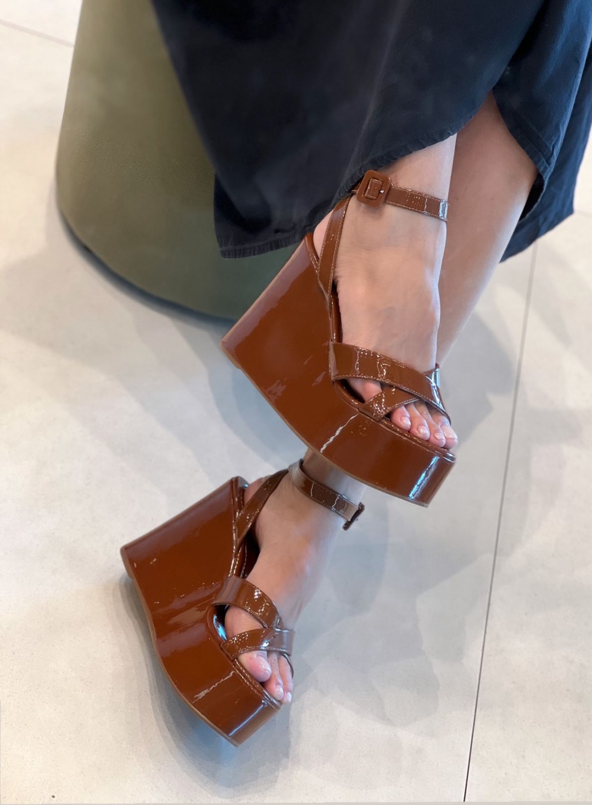 Esta Anabela em verniz caramelo é a combinação perfeita entre modernidade e conforto.