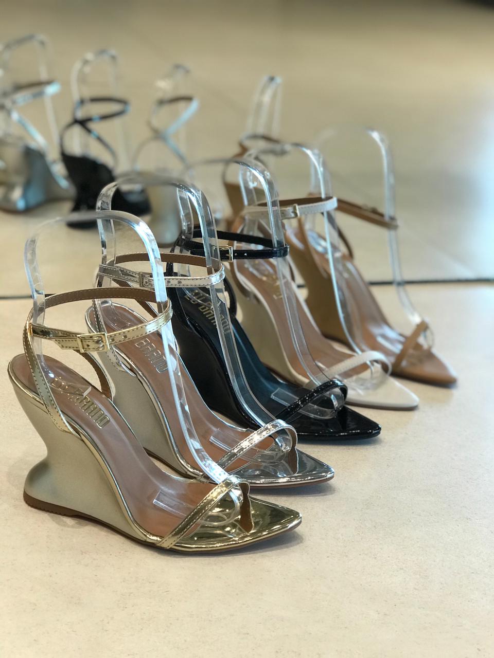 Sandália anabela moderna, com salto médio em formato wedge que garante elegância e conforto ao mesmo tempo. O modelo possui tiras finas que proporcionam um visual leve e sofisticado, além de detalhes em acabamento envernizado, perfeitos para compor produções do dia a dia ou ocasiões especiais. Com design minimalista e versátil, combina facilmente com vestidos, saias, calças ou shorts, trazendo um toque de estilo e sofisticação em qualquer look.