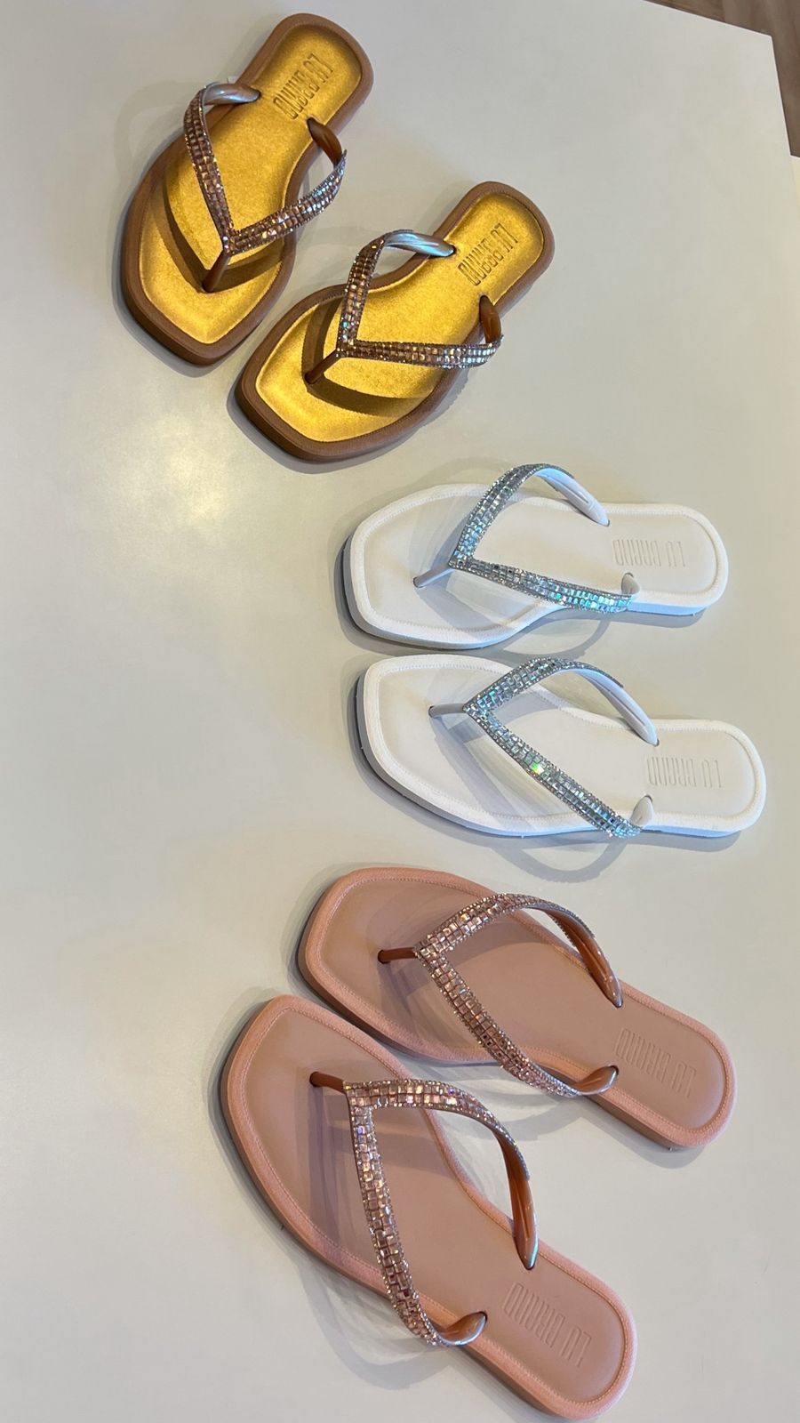 O destaque fica por conta das tiras finas com aplicação de pedrarias reluzentes, que captam a luz e trazem um brilho elegante, sem exageros. Sua palmilha macia e anatômica garante conforto absoluto, enquanto o acabamento de alta qualidade proporciona durabilidade e estilo para todas as ocasiões.