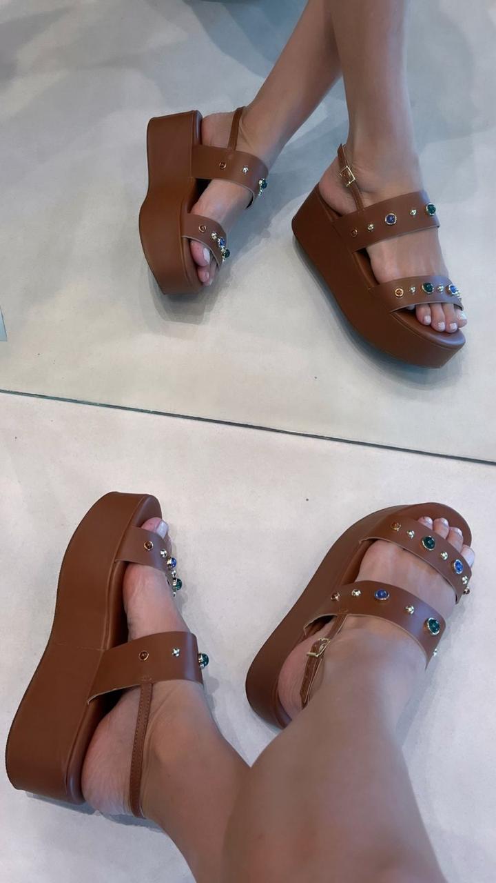 Com plataforma leve, ela garante estabilidade e aquele visual moderno que alonga a silhueta.