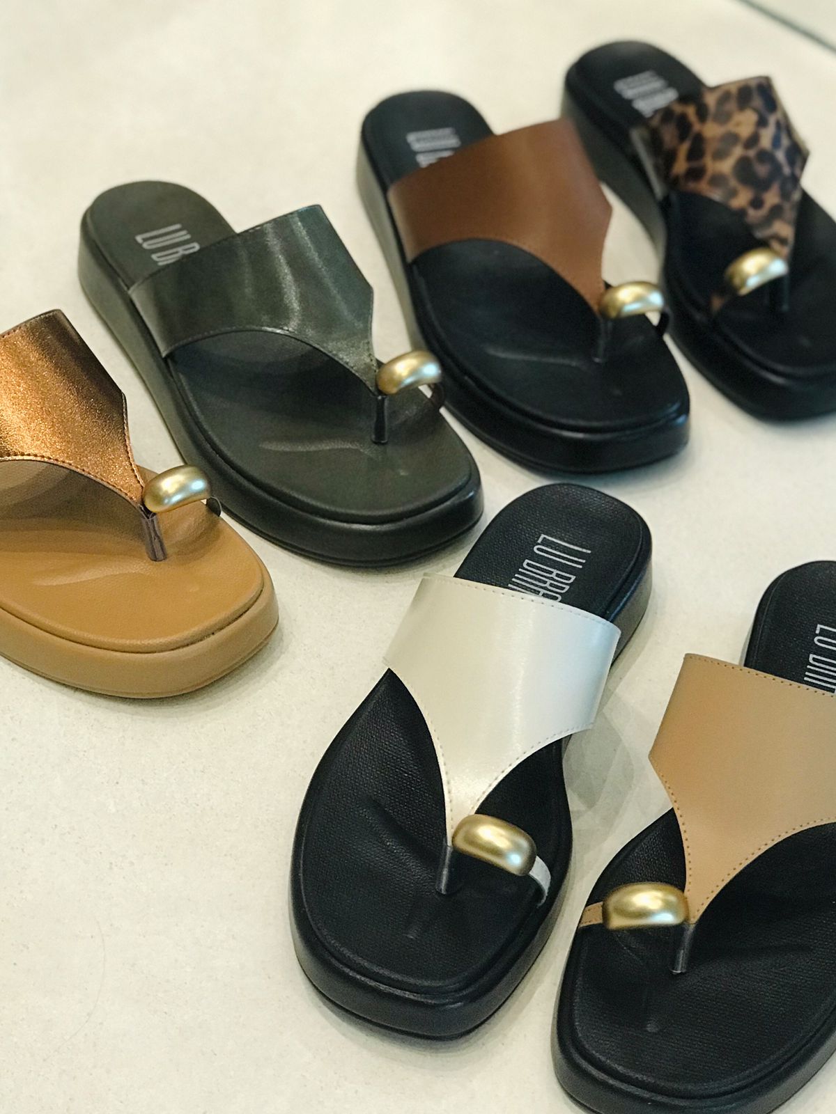 Elegância e conforto em cada passo. Este tamanco slide feminino combina um design moderno com um toque sofisticado, graças ao detalhe dourado na tira central. Disponível em três cores versáteis — preto com branco, marrom, e bege — ele é ideal para compor looks estilosos e práticos para o dia a dia ou momentos casuais.