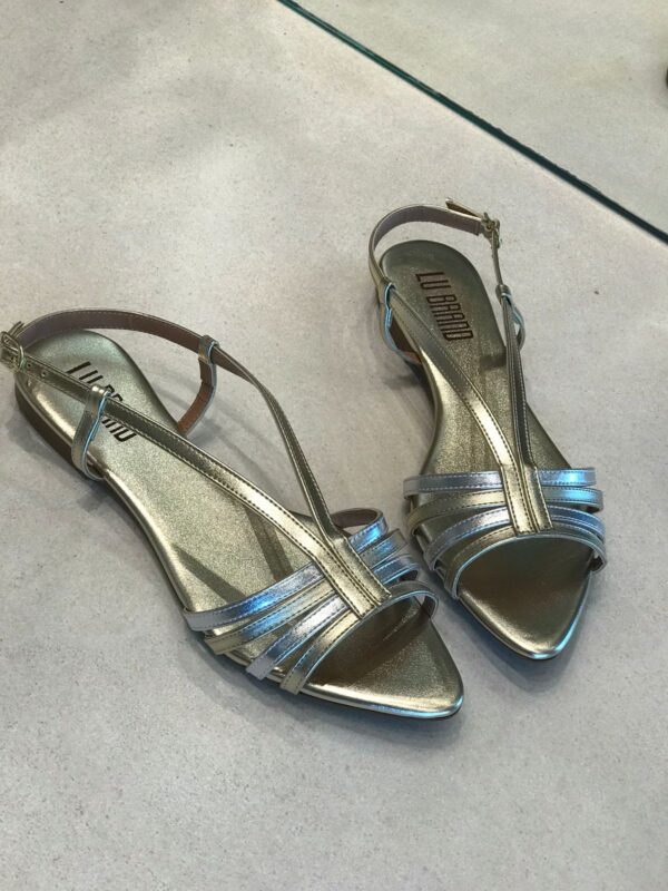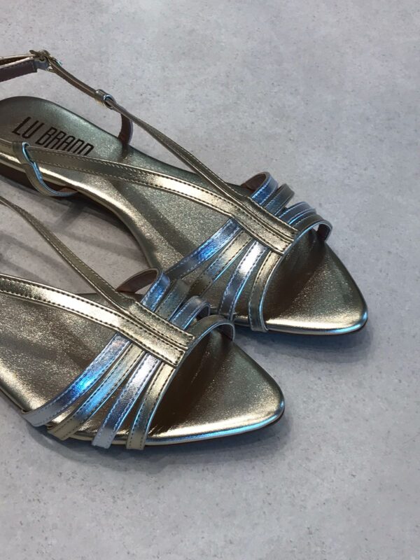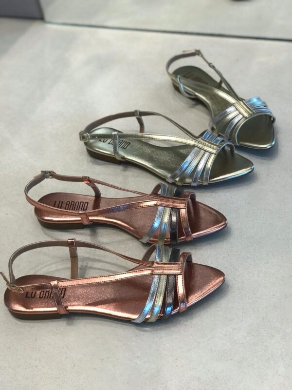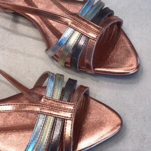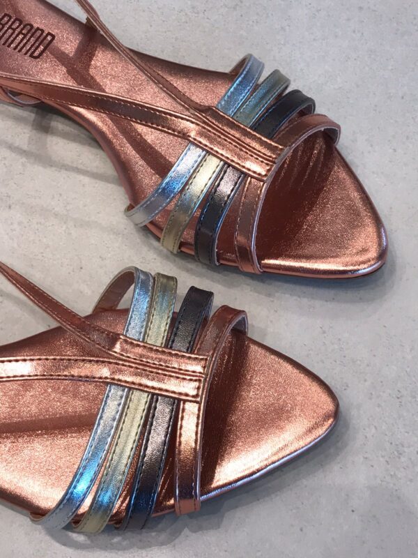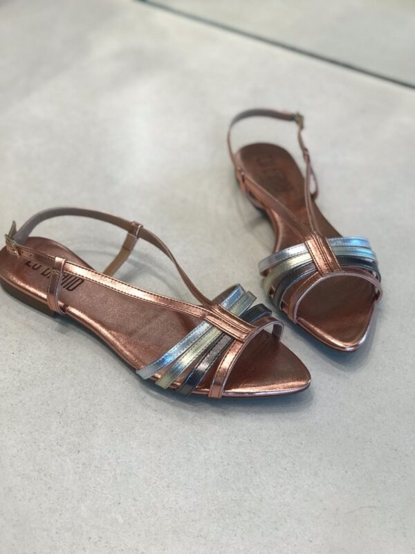 Conforto e estilo em um só modelo! Essa rasteira é perfeita para compor produções modernas e cheias de charme. Possui acabamento metalizado que garante brilho e sofisticação, tiras finas multicoloridas que valorizam os pés e fechamento ajustável no tornozelo para maior segurança.