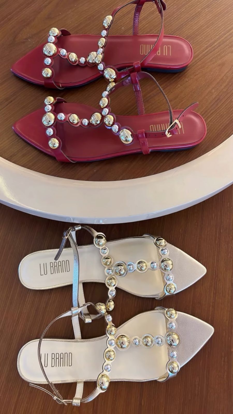 Com design sofisticado e bico fino elegante, ela combina delicadeza e personalidade na medida certa. As tiras finas abraçam o pé com leveza, enquanto as aplicações de esferas metalizadas e pedrarias criam um brilho moderno e marcante, um verdadeiro destaque nos pés.