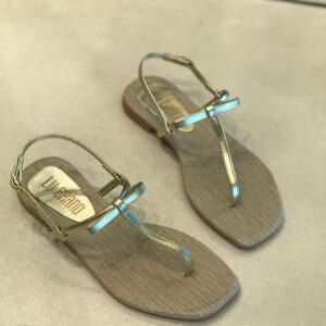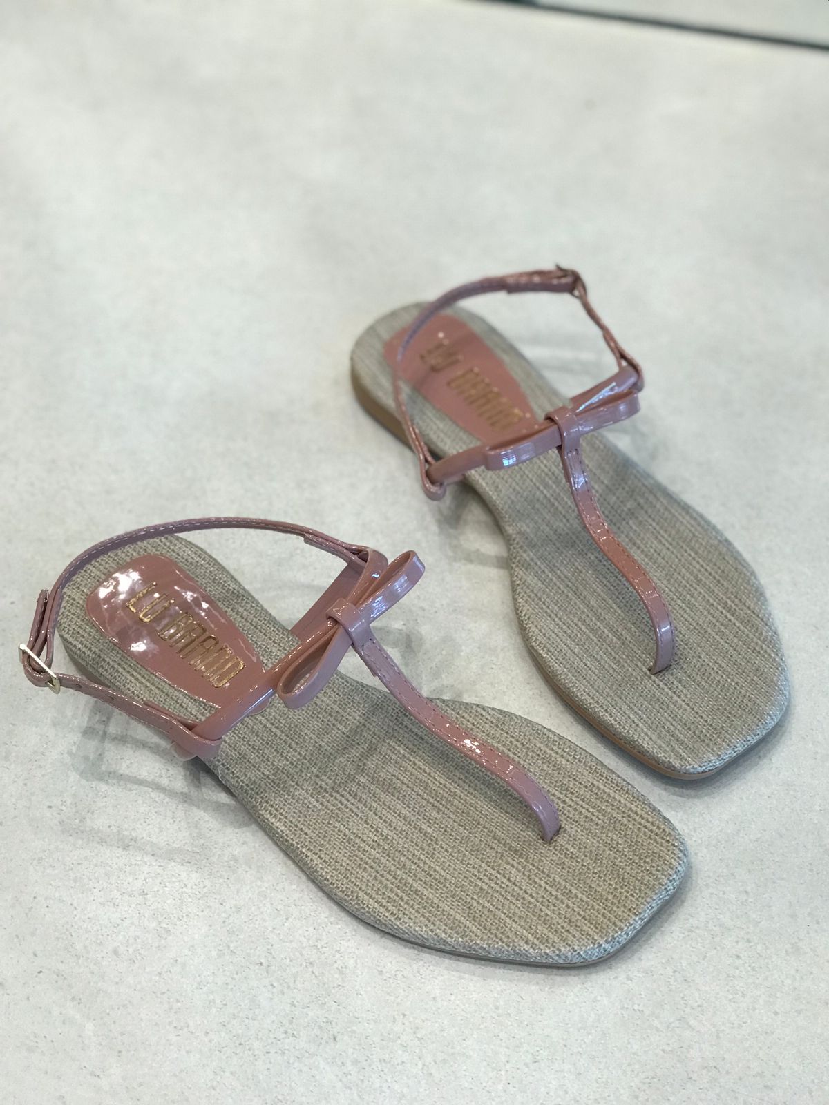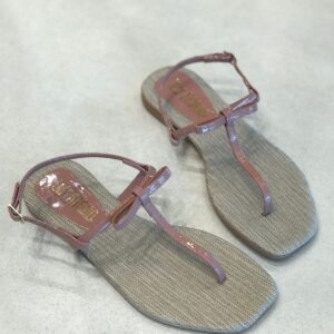 Delicada e versátil, essa rasteira é a escolha ideal para compor looks leves e elegantes nos dias mais quentes. Confeccionada com tiras finas em material envernizado, ela garante conforto e um toque sofisticado, além de ajuste perfeito ao pé graças à fivela lateral.