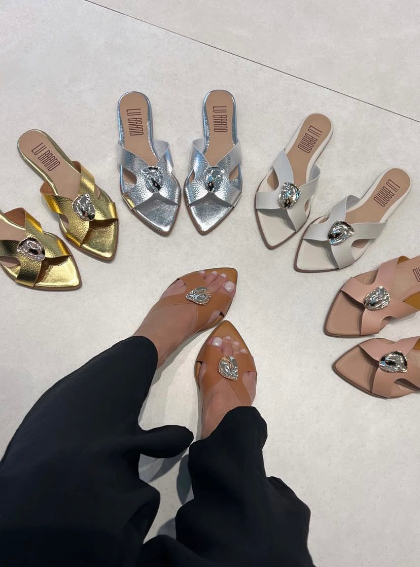 A Rasteira RACHEL é a união perfeita entre elegância e modernidade. Seu design sofisticado com acabamento metalizado e aplicação de pedra garante um toque glamouroso, ideal para quem ama estar estilosa em qualquer ocasião.