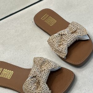 A Rasteira ROSANE combina o charme artesanal do trançado em palha com o toque sofisticado da aplicação em pedra, criando um design atemporal e versátil.