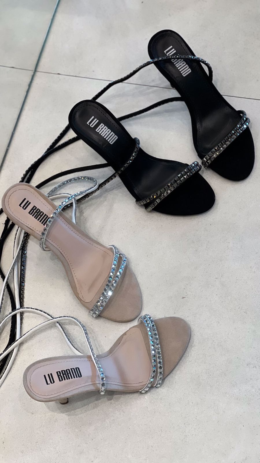Delicada e sofisticada, essa sandália é a escolha perfeita para quem busca elegância em cada detalhe. Com design minimalista, ela possui tiras finas adornadas com aplicações brilhantes, que trazem um toque de glamour na medida certa. O salto fino valoriza a silhueta, enquanto o fechamento por amarração no tornozelo garante charme e segurança ao caminhar.