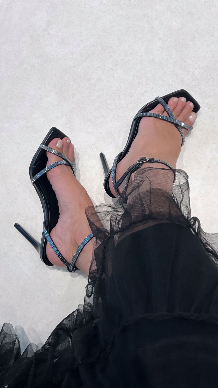 As tiras finas com aplicação de brilho dão um toque luxuoso e moderno, refletindo a luz de forma delicada e valorizando os pés. O bico quadrado acompanha as tendências atuais, enquanto o fechamento no tornozelo garante ajuste perfeito e segurança ao caminhar.