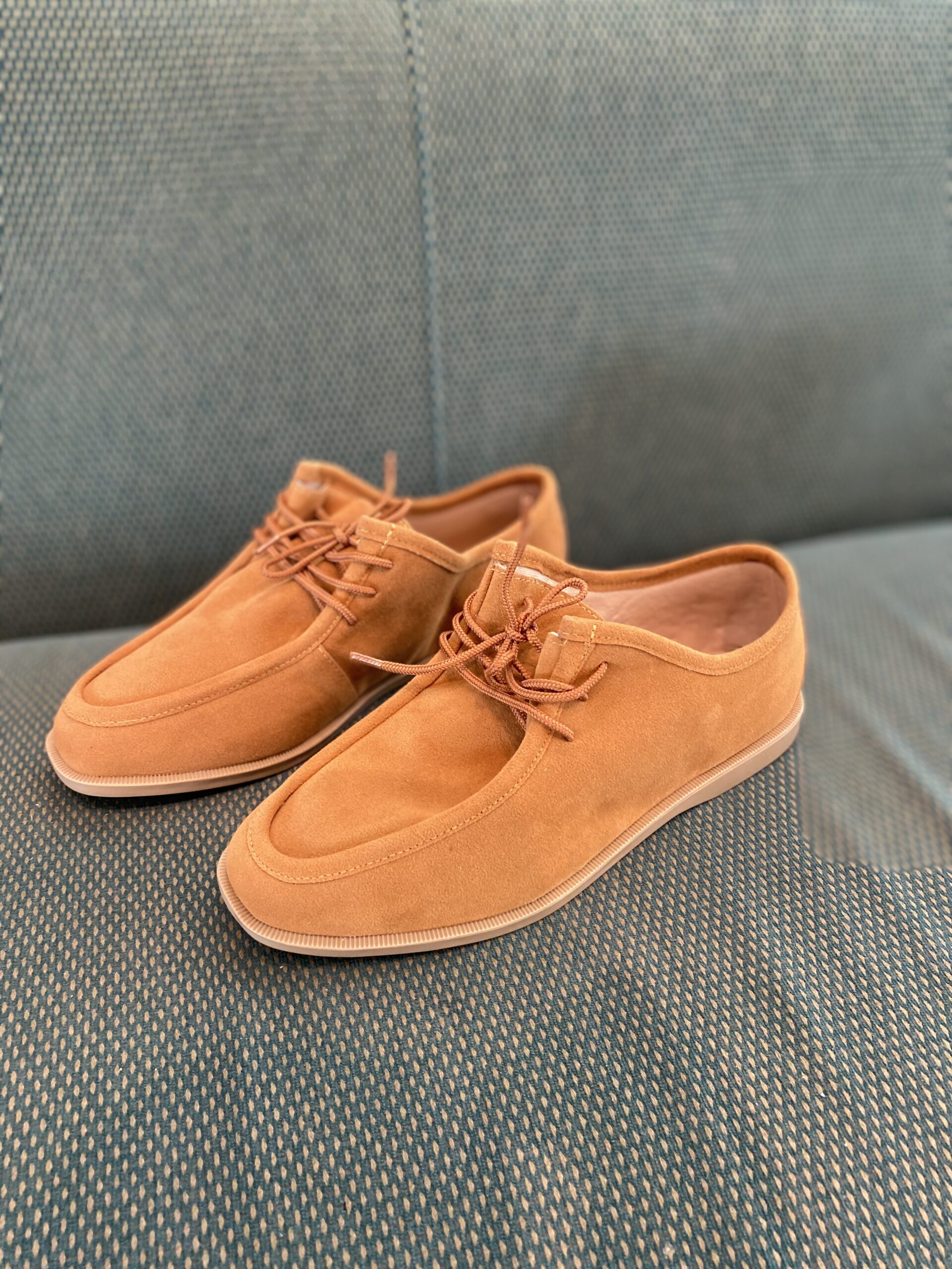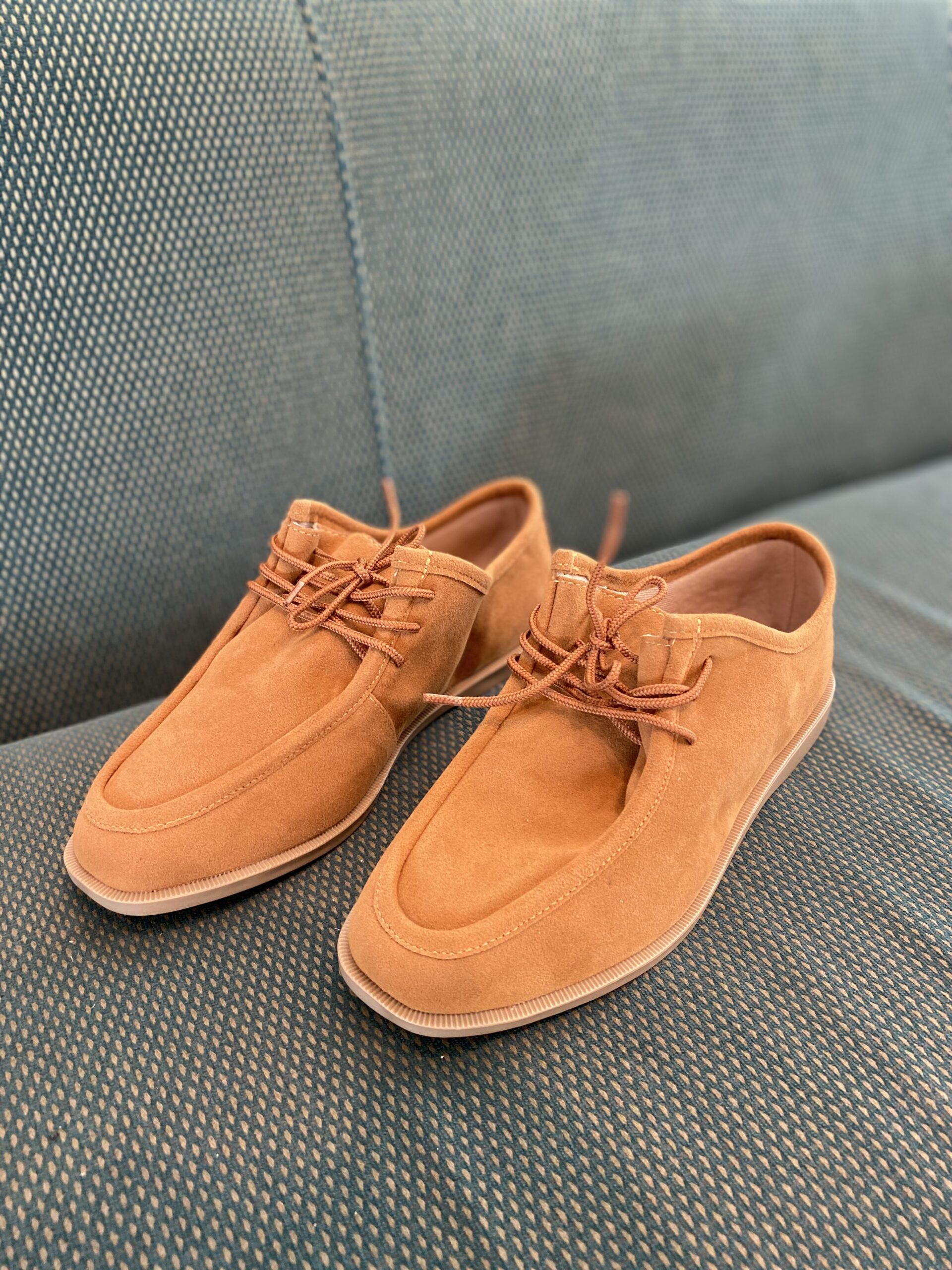 Este sapato masculino em camurça caramelo é a escolha perfeita para quem valoriza elegância e praticidade no dia a dia.